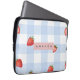 Personalised Strawberry & Blue Gingham Pattern Laptop Sleeve