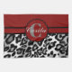 This design features a burgundy diagonal striped pattern on top and a black and white leopard print on the bottom. In the centre, there is a circle monogram logo which can be personalised with the recipient's initial and first name.
