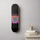 A bold in your face edgy day of the dead skateboard personalised with painted sugar skull in orange, turquoise and hot pink, on a chalkboard background with a quirky font.