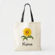 Cute sunflower tote personalised with editable text. (Front features sunflower and name or other text. Reverse side features a larger sunflower.) From 369MyName