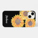 This floral iPhone case is decorated with watercolor sunflowers in shades of yellow on a black background.