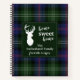Cute home sweet home Christmas family favourite recipe notebook you can easily customise by clicking the "Personalise" button, Featuring deer silhouette and clan Sutherland tartan in purple, green check.