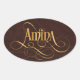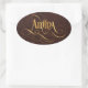 Personalised Swirly Script Amina Gold on Leather Oval Sticker