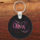 Personalised Swirly Script Olivia Pink on Black Key Ring