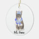 Personalised Tabby Cat (Grey) Blue Ski Hat & Scarf Ceramic Ornament