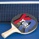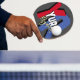 Stylish table-tennis-racket personalised with his name in cool fonts, with big oversized red and blue initial letters with shadow over a solid grey background... modern monogrammed design, with the name of the stylish player...