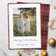 Send Christmas greetings with love and a simple, festive flair. This custom photo Christmas card template is a snap to personalise. On the front we've given this minimalist design a warm touch with a 'merry christmas' greeting in an elegant shade of burgundy in all lowercase based on our own handwriting in a relaxed script that feels intimate and familiar. This handwriting element of the design can't be altered, as it's an image. You can change the colour, font or text size of any of the text that you personalise below it, which is black by default. We've included a tartan border on the front and a simple, cheery tartan design on the back as well. We've chosen matte as the default paper choice, but you can of course change this to semi-gloss if you prefer a brighter look, and don't forget to check out zazzle's selection of premium papers! Use zazzle’s intuitive editing mode and favourite photo and make this simple, bright modern Christmas card uniquely yours. And please browse our store for more stylish holiday card designs, including this design with 'merry christmas' in black and also in gold!