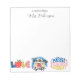 Brighten every message with this personalised teacher notepad! Featuring the phrase "A Note From Mrs. Robinson" (customisable with any name), this charming notepad includes adorable, colourful teacher-themed graphics at the bottom: