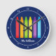 Personalised Teacher Cute Crayon Blue Classroom Round Clock