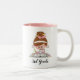 Personalise this cute teacher hard at work grading papers on one side and making lesson plans on the other. She wears a pencil through the bun in her hair and keeps a some extra pencils in a cup with a heart shaped apple on it. On the other side she is making lesson plans with lots of sticky notes, a highlighter and pen in hand. Personalise it with your brunette brown haired teacher's name on one side and the grade she teaches on the other side. Artwork © Chrissy H. Studios, LLC. All rights reserved.