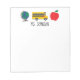 This notepad is the perfect teacher gift! Personalise with your teacher's name for a back to school or end of year gift. Features globe, apple, and bus illustrations. © 2023 Tea Olive Co.