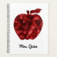 Personalised Teacher Red Faux Sequin Apple Planner. Beautiful glitzy sparkle faux sequin red apple silhouette. Personalise with teacher's name in pretty script. Fun teacher gift. www.SamAnnDesigns.com