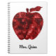 Personalised Teacher Red Faux Sequin Apple Notebook. Beautiful glitzy sparkle faux sequin red apple silhouette. Personalise with teacher's name in pretty script. Fun teacher gift. www.SamAnnDesigns.com
