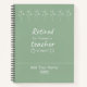 Modern typography with soft, calm sage green background with white floral patterns with the saying retired but forever a teacher at heart perfect gag retirement journal gift for a teacher suitable for new year, teacher appreciation day and retirement party. You can write your personalised custom name and retired year.