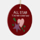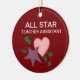 Add your teacher's name or special message to a teacher on this fully customisable ornament. Makes a great Christmas gift, teacher appreciation gift, or a end of the year gift for a special teacher assistant. Design has a star and heart in beautiful Christmas colours.