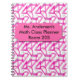 Organise your day with this Personalised Teachers Pink Math Tools Spiral Notebook that features Pink Math Tools pattern background that includes a grey compass, bright pink protractors, bright pink rulers and pink erasers. There is a pink banner that currently says Ms. Andersen's Math Class Planner Room 205. Personalise with your name or any text you'd like. Perfect gift for teachers. If you need help customising this product, please contact me through my store and I'll be happy to help! Many matching products are also available in our shop.