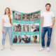 Personalised Teal 9 Photo Collage Fleece Blanket