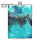Personalised Teal Blue and Black Fluid Art Marble Hip Flask