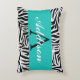 Super Cool zebra and teal pattern for Lumbar size accent Throw Pillow. Personalised custom monogram, initial and name in White and Black zebra print. The back is all black and white zebra. This trendy, chic, and stylish fashionable design is perfect for bedrooms, lounge, sofa, couch, living room, boats, beach houses, holiday houses, teenagers, home decor, or office. The perfect gift for a teenager. Personalise this gift by adding your own name or initials to make it your own. Choose your own font and colours.