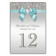 Personalised Teal Blue Faux Bow Silver Sequins Table Number