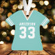 Celebrate your football star with this personalised teal football jersey ornament. Perfect for commemorating a special season, player, or team. Customise it with a name and number to create a unique keepsake.