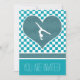 Chequered gymnastics party invitation with a teal and white design. A big teal green heart has a gymnast silhouette inside! Use the custom text fields to add your party information. Use the "customise it" button for more options (including different fonts and colours!)