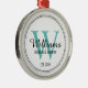 Personalised TealMonogram Newlywed Metal Christmas Ornament. The dotted border is reminiscent of milgrain, which is a jewellery-detailing technique often used for engagement and wedding rings.
