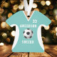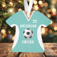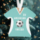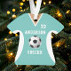Celebrate your soccer star with this personalised teal soccer jersey ornament. Perfect for commemorating a special season, player, or team. Customise it with a name and number to create a unique keepsake.