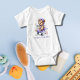 An adorable Teddy bear in an aeroplane on this baby body suit. Personalise with your text or name.