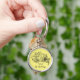 A minimal simple design key chain for her "she shed" keys. This key ring can be personalised with a name. Pastel yellow background with a black graphic and black script. A unique gift idea for her.