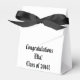 Personalised Tent Favour Boxes comes with your choice of black, white, pink or purple ribbon. You can personalise it to say whatever you want with your choice of font, font colour, etc. Other favour box styles are available.