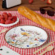 Our exquisite wedding plates are certain to elevate your wedding or bridal shower event. Centred are watercolor wildflowers in colours of autumn - terra cotta, orange, yellow and blue. Arched above are the names of the couple in a deep terra cotta clay, while just below is the date of the wedding, bridal shower or other celebration. These personalised plates, ringed in the matching terra cotta, are the perfect blend of beauty and practicality, adding a special touch to your celebratory occasion..