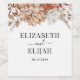 An elegant fall floral personalised wedding wine bottle label with an elegant terracotta floral border. Designed for you by Blackberry Boulevard.