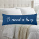 Personalised text body pillow | I need a hug. Navy blue and white colours. Elegant script typography.