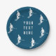 Personalised Text Skiers Skiing Ski Blue White Paper Plate