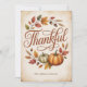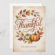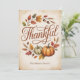 Featuring elegant hand-lettered typography that reads “Thankful” surrounded by pumpkins, acorns, and golden leaves, this card captures the cosy warmth of the season.
