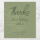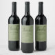 Soft sage lettering with light botanical leaves creates a clean thank-you wine label for wedding favours. Add names and date to dress up bottles for guest tables, welcome gifts, or reception favours.