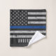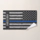 Thin Blue Line Bath Towels - American flag in Police Flag colours, distressed design . Personalise with police family name. This personalised police bath towel set is perfect for police and law enforcement families and all those who support them . COPYRIGHT © 2020 Judy Burrows, Black Dog Art - All Rights Reserved. Personalised Thin Blue Line Police Bath Towel Set