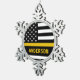 Thin Gold Line Ornament for 911 dispatchers and police dispatchers. Personalise this dispatcher ornament with name and year. This personalised dispatcher gift is perfect for police dispatcher appreciation, 911 dispatcher thank you gifts, and dispatcher retirement gifts or party favours. Order these dispatchers christmas ornaments bulk wholesale for the police department or fire station. COPYRIGHT © 2020 Judy Burrows, Black Dog Art - All Rights Reserved. Personalised Thin Gold Line Flag US 911 Dispatcher Snowflake Pewter Christmas Ornament