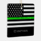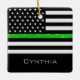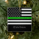Personalised Thin Green Line Glitter Flag Ceramic Ornament