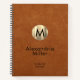 Modern to-do list journal features an elegant monogrammed design on a sable leather print background. Custom monogram initial and name in stylish simple font with a complimentary brushed metallic gold monogram medallion.