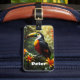 Brighten up your travels with this colourful toucan luggage tag. Its tropical design will add a touch of fun to your journey. Personalise it with your name and easily add your contact information to the back. This stylish and practical luggage tag is the perfect accessory for any traveller.