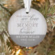 Remember your loved ones year round with this personalised memorial keepsake ornament. The treasured memory ornament features a photo on the back. The ornament reads "when someone we love becomes a memory that memory becomes a treasure". Personalise with your loved ones name and dates.