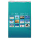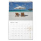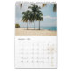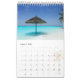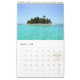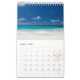 Paradise on a calendar! Add your own special touch to this stylish custom year calendar by replacing the twelve tropical beach photos with your favourites! This one page photo calendar template includes all twelve of your photos on the back for easy reference; all are framed in turquoise and are featured over an artistic wave background. Easily personalise the calendar title (which reads: "Live more, worry less" ), name and year using the provided templates. An artistic tropical palm tree with coconuts adorns each monthly page.