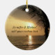 Celebrate a first holiday together or create a personal souvenir of your honeymoon with this tropical ocean view ornament. Customise or delete the text on this holiday ornament with a tropical beach sunset scene, framed by a palm tree.