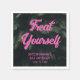 Add some fun and tropical vibes to your Bat Mitzvah party with these "Treat Yourself" neon pink tropical napkins.
