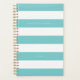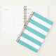 Chic personalised planner features wide robin's egg blue turquoise and white stripes with your name or monogram in elegant white lettering. Personalise with the year along the bottom.