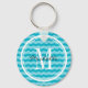 Personalised turquoise blue chevron pattern key chain with cute zig zag lines. Monogrammed keychain for girly women and teen girls. Preppy zigzag design with monogram name initial letter and stylish script typography. Cute favour or Birthday gift idea. Customisable background colour.