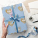 Personalised Twice Golden Hearts, Ice Blue Wrapping Paper