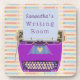 This pretty drink coaster set design for creative writers / novelists / journalists and any other sort of author has a pretty purple typewriter drawing on it. The vintage 60s - style typewriter has a heart in the middle and its paper says, "[Your Name]'s Writing Room." The background has a light ink pen repeating pattern with a watercolor / painted effect.